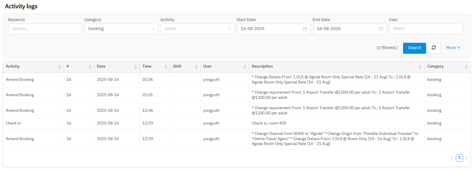 ความหมายของคอลัมน์ต่างๆ ของหน้าจอ Activity Logs