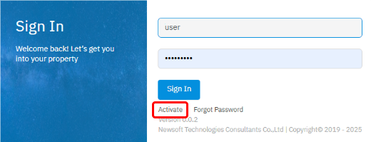 ในกรณีที่ยังไม่เคยใช้งานระบบมาก่อน ผู้ใช้จะต้องทำการ Activate (แจ้งเปิดใช้งาน) ก่อน โดยการคลิกที่คำว่า Activate ที่ใต้ปุ่ม Sign In ตามภาพด้านบน