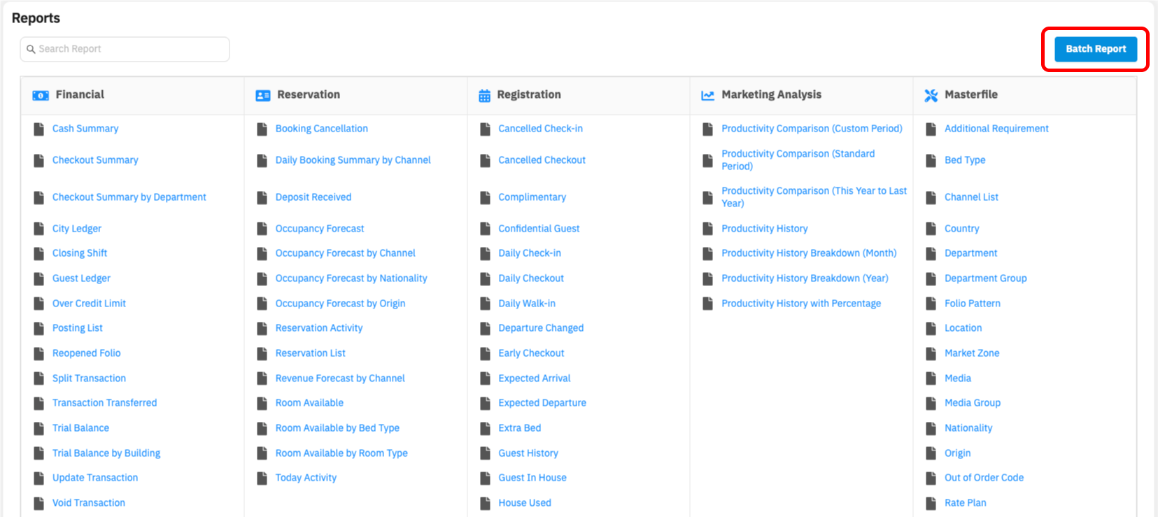 1. กดปุ่ม Batch Report บริเวณมุมขวาบนของหน้าจอ Reports
