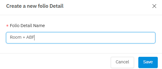 การสร้าง Folio Pattern Detail สามารถทำได้โดยกดที่ปุ่ม + ตามภาพด้านบน แล้วตั้งชื่อ Folio Detail ตามที่ต้องการ แล้วกด Save เพื่อยืนยันการบันทึกรายการ ตามภาพ