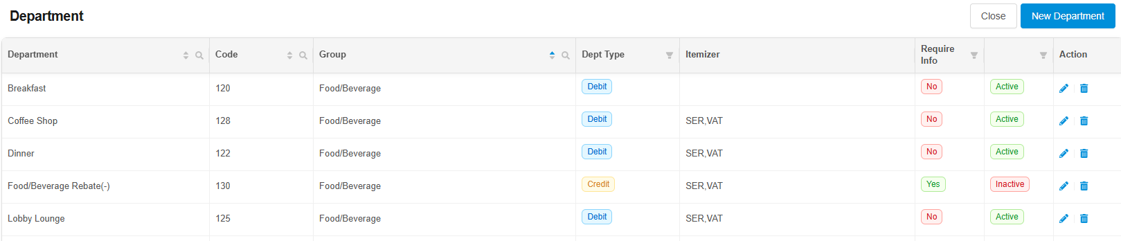 1. คลิกที่ปุ่ม New Department Group เพื่อเพิ่มประเภทรายได้