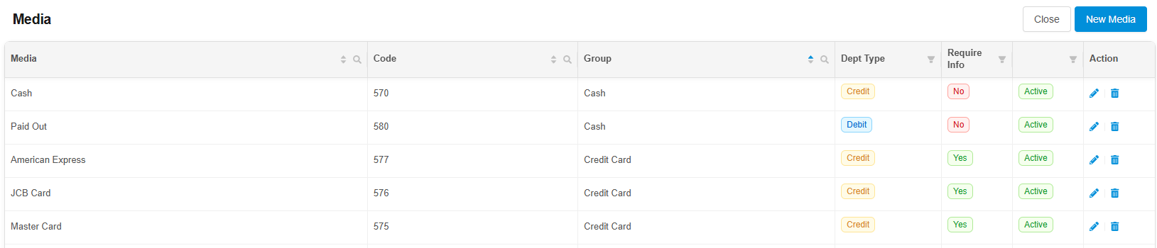 1. คลิกที่ปุ่ม New Media เพื่อเพิ่มประเภทการรับชำระ