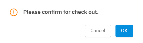 ระบบจะให้ผู้ใช้ยืนยันการทำเช็กเอาต์อีกครั้งโดยการกดปุ่ม OK หรือกดปุ่ม Cancel เพื่อยกเลิกการเช็กเอาต์ ในกรณีที่ผู้ใช้ยืนยันการทำเช็กเอาต์ ถ้าไม่พบปัญหาอะไร ระบบจะแสดงข้อความ "Check Out Completed" แต่ในกรณีที่ระบบพบข้อผิดพลาด อาจมีข้อความเตือนจากระบบ ในแต่ละสถานการณ์ ดังนี้