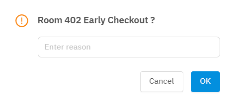 1. กรณีที่เป็นการทำเช็กเอาต์ก่อนถึงวันกำหนดออกจริง ระบบจะขึ้นข้อความเพื่อให้ผู้ใช้ใส่เหตุผลในการทำเช็กเอาต์ก่อนกำหนดนี้อีกครั้ง ตามภาพด้านล่าง ในกรณีนี้ ระบบยังคงอนุญาตให้ทำการเช็กเอาต์ได้ หลังการใส่เหตุผล แต่ยังคงเก็บสถิติข้อมูลการเช็กเอาต์ก่อนกำหนดนี้ไว้เพื่อแสดงในรายงานด้วย