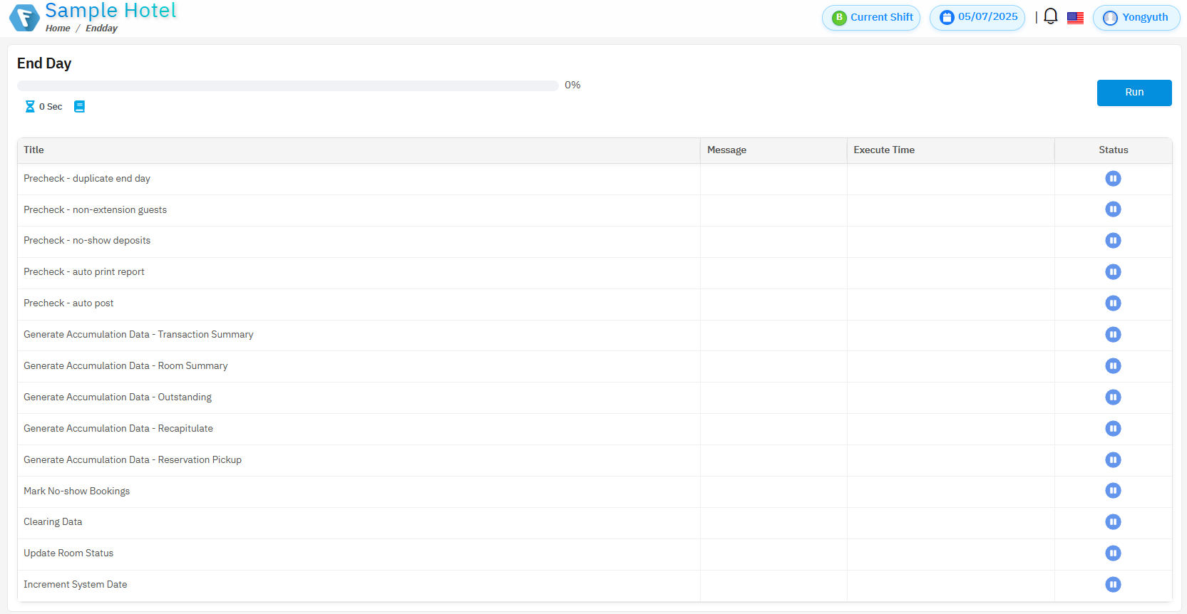 ตรวจสอบว่ายังคงมีแขกที่ถึงกำหนดเช็กเอาต์ และยังไม่ได้ทำการเช็กเอาต์ออกจากระบบหรือไม่ - Precheck – no show deposits
