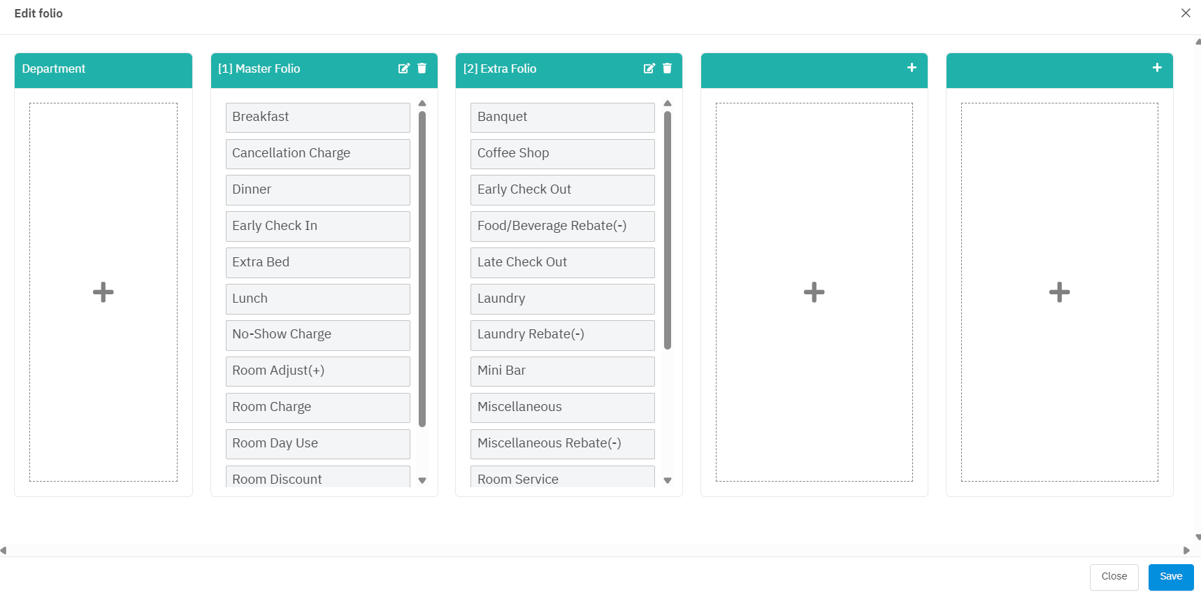 ในการบันทึกรายการขาย (ค่าใช้จ่ายของแขก) ในกรณีที่มีการเปิด Folio ไว้มากกว่า 1 ใบในห้องนั้นๆ ตัวรหัสประเภทการขาย (Department Code) จะเป็นตัวกำหนดว่า รายการขายนั้นจะถูกบันทึกไปยัง Folio ใบใดให้เอง โดยจะเป็นไปตามรายละเอียดที่ได้ตั้งไว้ล่วงหน้าแล้วใน Folio Pattern ของห้องนั้นๆ