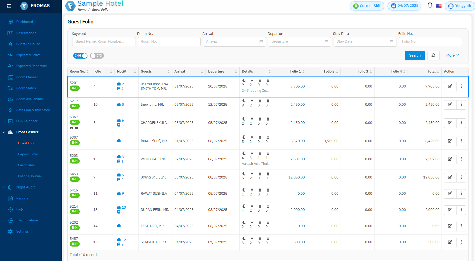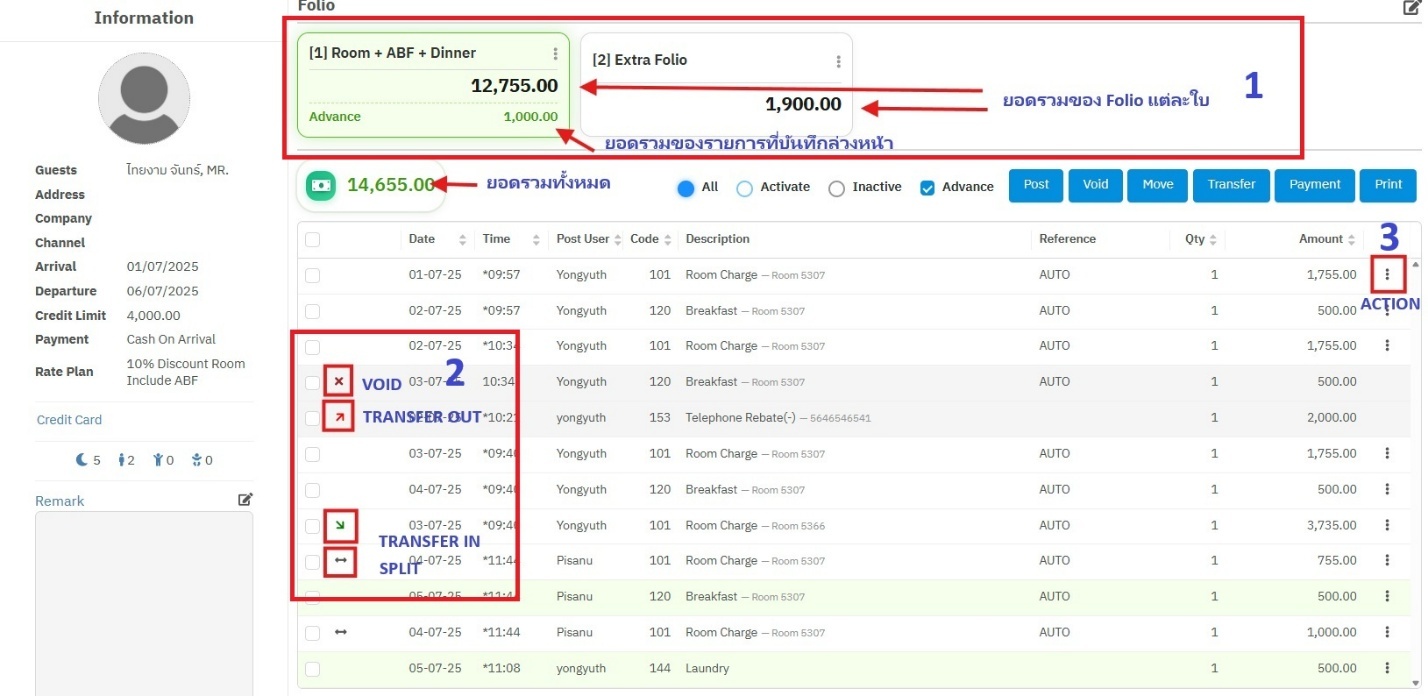 รายละเอียดหน้าจอในส่วนของ Guest Folio