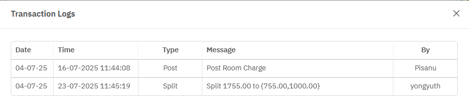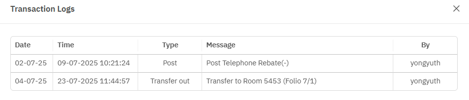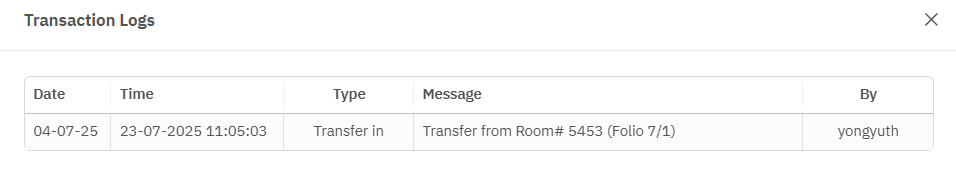 TRANSFER IN เป็นรายการที่ถูกย้ายมาจากห้องอื่น สามารถเรียกดูรายละเอียดได้โดยกดที่เครื่องหมาย