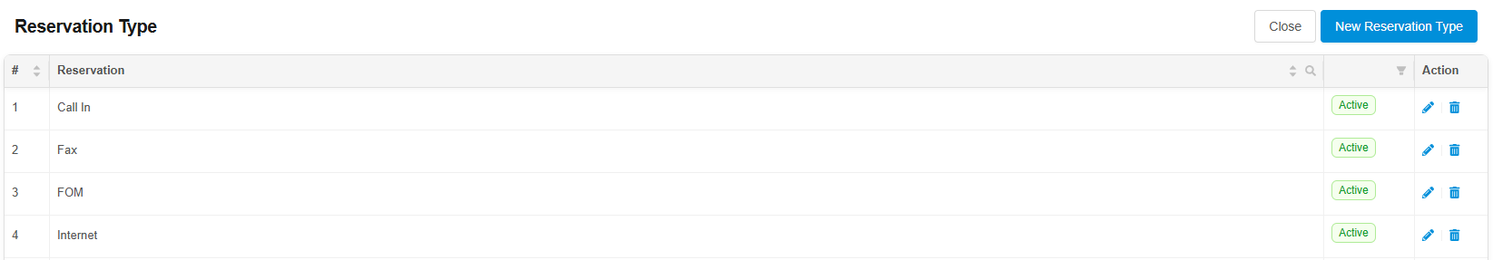 เพื่อลบข้อมูล หรือคลิกเลือกที่ Close เพื่อออกจากหน้าจอ Reservation Type
